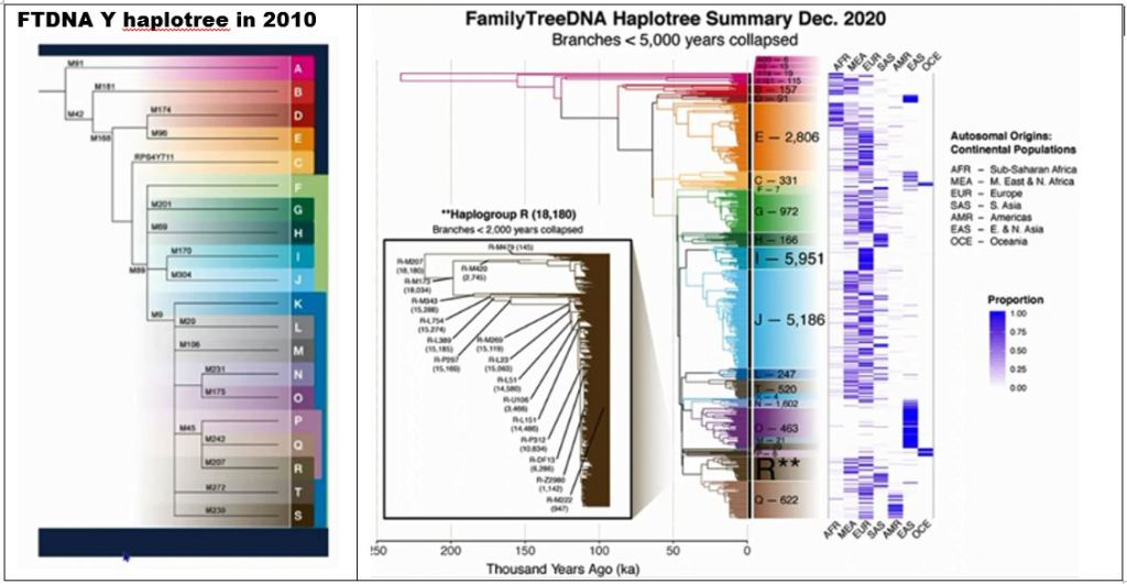 The exponential growth of Y haplotree through last 20 years is shown in the table below (Source: FTDNA at Rootstech conference).
